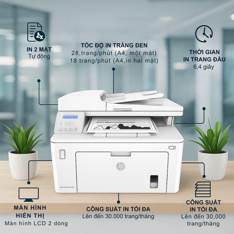 Máy in đa chức năng HP LaserJet Pro MFP M227sdn – Giải pháp hoàn hảo cho văn phòng Việt Nam với chi phí vận hành thấp chỉ 800đ/trang
