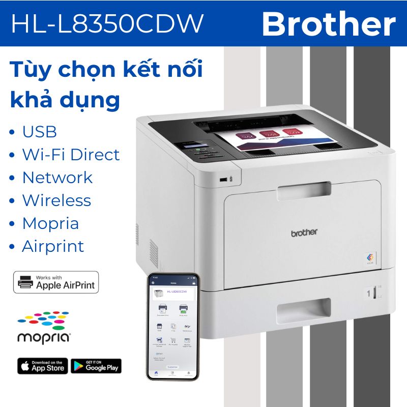Máy in Brother HL-L8350CDW là giải pháp in laser màu chuyên nghiệp được thiết kế dành riêng cho doanh nghiệp vừa và nhỏ có nhu cầu in màu hiệu quả. Với tốc độ in ấn tượng 30-32 trang/phút cho cả in đen trắng và màu, thiết bị này mang đến hiệu suất vượt trội trong phân khúc máy in văn phòng. Công nghệ in 2 mặt tự động tích hợp giúp tiết kiệm đến 50% giấy in, đồng thời hỗ trợ kết nối không dây linh hoạt cho môi trường làm việc hiện đại.