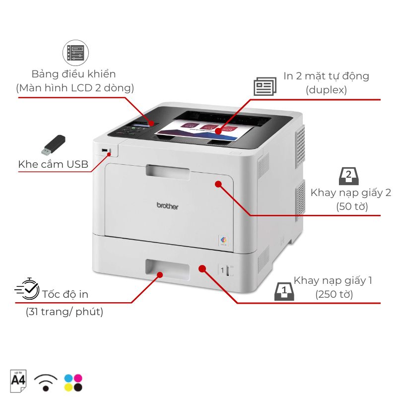 Thông số kỹ thuât: Máy in laser màu Brother HL-L8350CDW