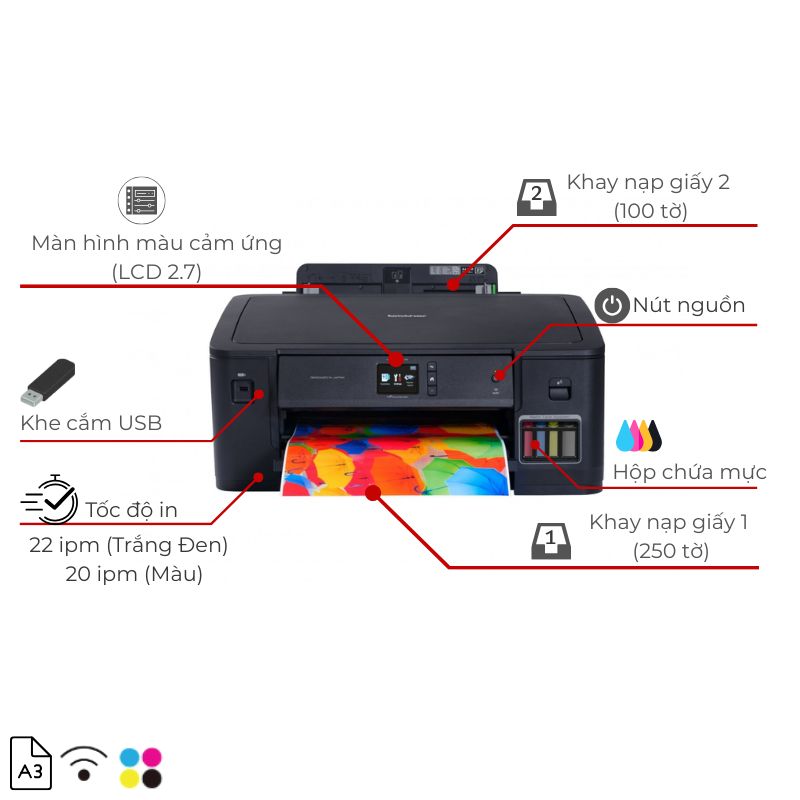 Thông số kỹ thuât: Máy in phun màu Brother HL-T4000DW khổ A3